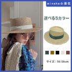 カンカン帽 レディース 帽子 麦わら帽子 ストローハット シンプル レトロ 春夏 大人可愛い ナチュラル ベージュ リボン ブラック お洒落 浴衣